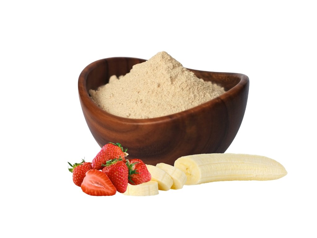 Složení: tsampa, sušený banán, lyofilizované jahody, chia semínka, bílá čokoláda (cukr, kakaové máslo, sušené mléko plnotučné, sušená syrovátka, emulgátory E22 a E476, vanilkový extrakt bourbon Madagascar)